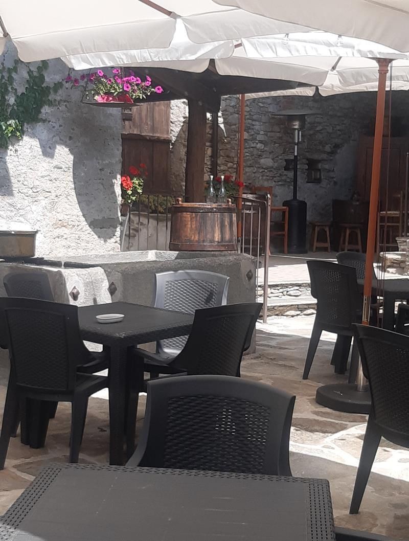 Il tutto servito in un locale caratteristico in pietra e legno, circondato da un parco secolare, dalla fontana in pietra e il forno a legna della borgata; luogo un po' magico, allo stesso tempo sobrio e curato, un ambiente caloroso e piacevole, con un pizzico in più di novità.